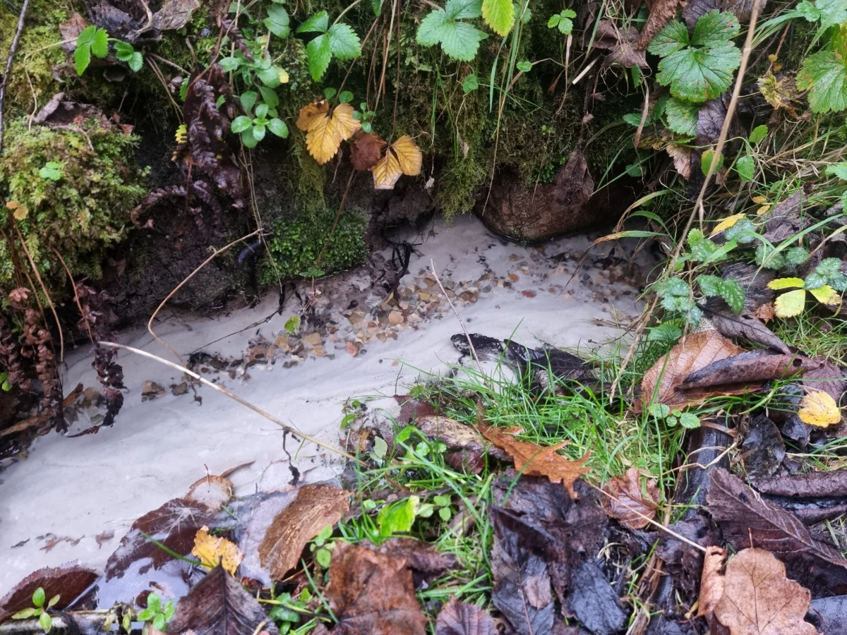 Ramātu klinšu austrumu daļā no vertikālās klints pamatnes izplūst spēcīgs avots.