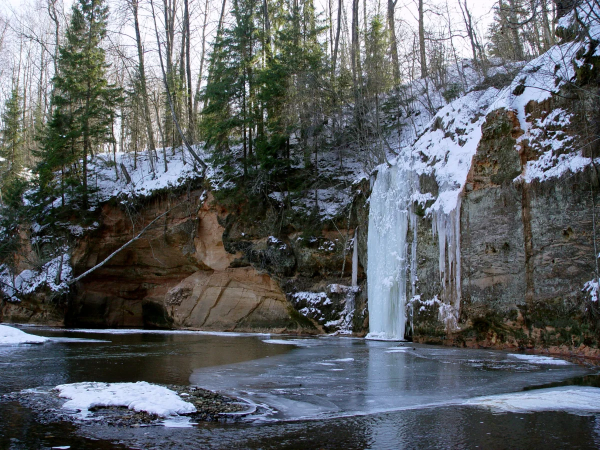 Pāri Krauļukalna iezim aukstās ziemās veidojas vairāki krāšņi leduskritumi — tie ir vieni no atpazīstamākajiem un skaistākajiem Latvijā.