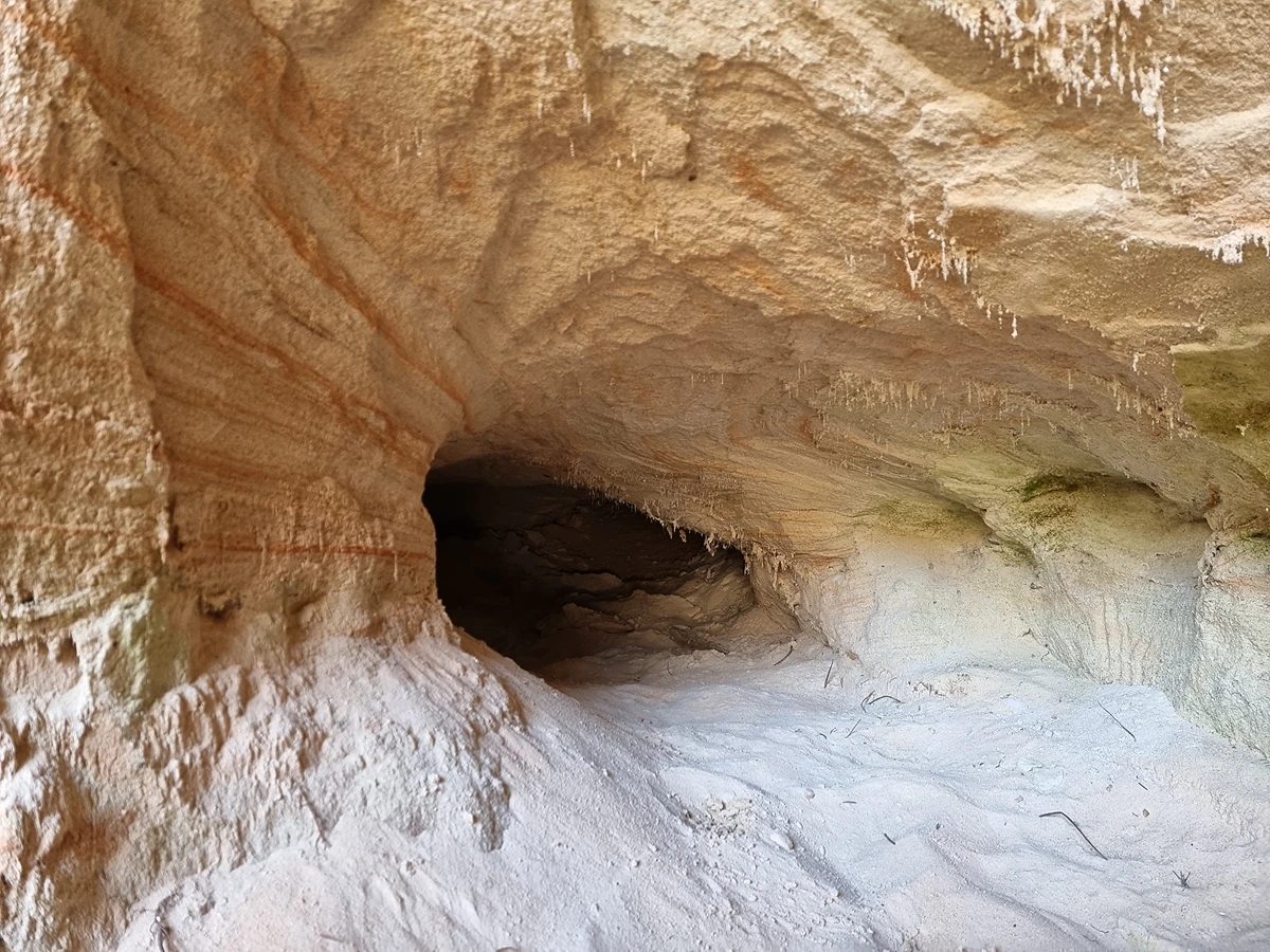 Lielu daļu klints virsmas aizņem plaša niša – gandrīz visā platumā klints veido izteiktu pārkari virs tās. Pa smilšu sēri iespējams ieiet nišas dziļumā, kur redzams, ka tā turpinās kā šaura ala.