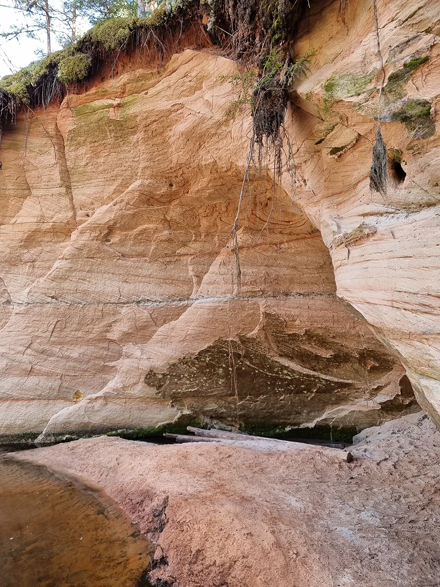 Tomēr te tas atklājas – līdz klints pakājei ved stāva taciņa, un lejup nonākot, paveras skats uz krāšņu smilšakmens sienu. Klinti abos galos apskalo Strīķupe, savukārt tās vidusdaļā, kad ūdens līmenis upē ir zemāks, izveidojas plašāka smilšu sēre.