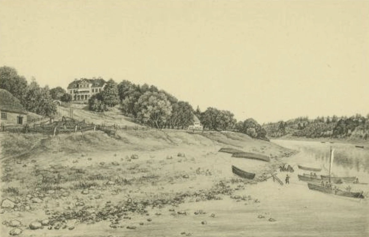 1833. gadā celtā pēdējā Pastamuižas ēka. “Klauenstein an der Düna”. 1858. gada jūlijs. / Vilhelms Zigfrīds Štafenhāgens
