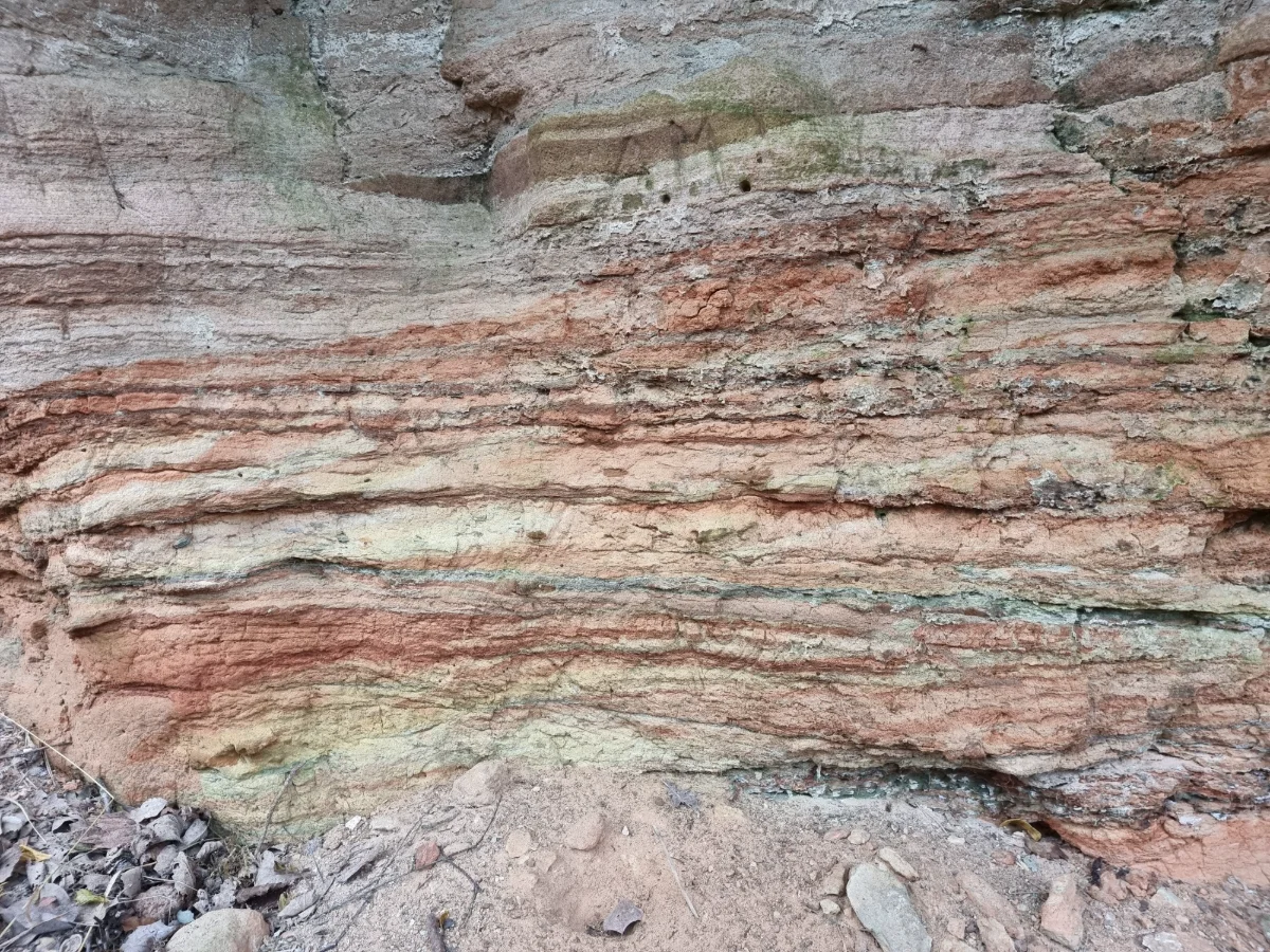 Šeit atsedzas devona perioda Mūru svītas ieži — daudzkrāsains dolomītsmilšakmens, māla un aleirolīta slānīšu “pīrāgs”.